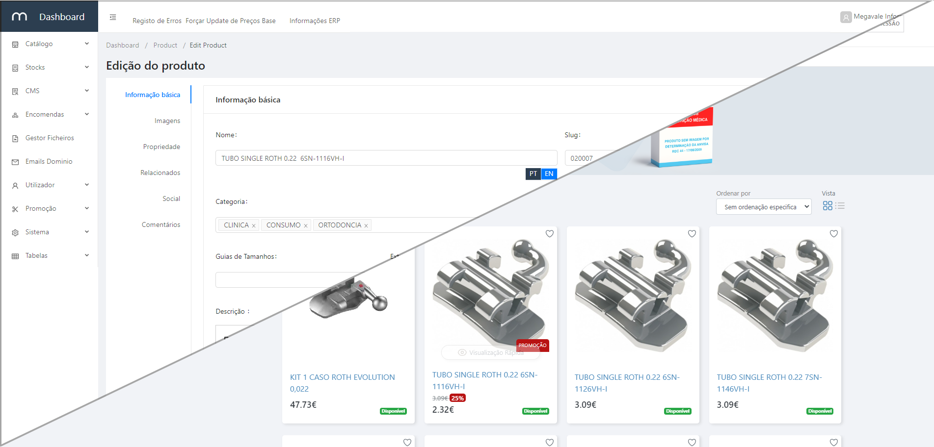 Crie artigos com atributos, gerencie stocks, integre-se a softwares de faturação e personalize promoções.